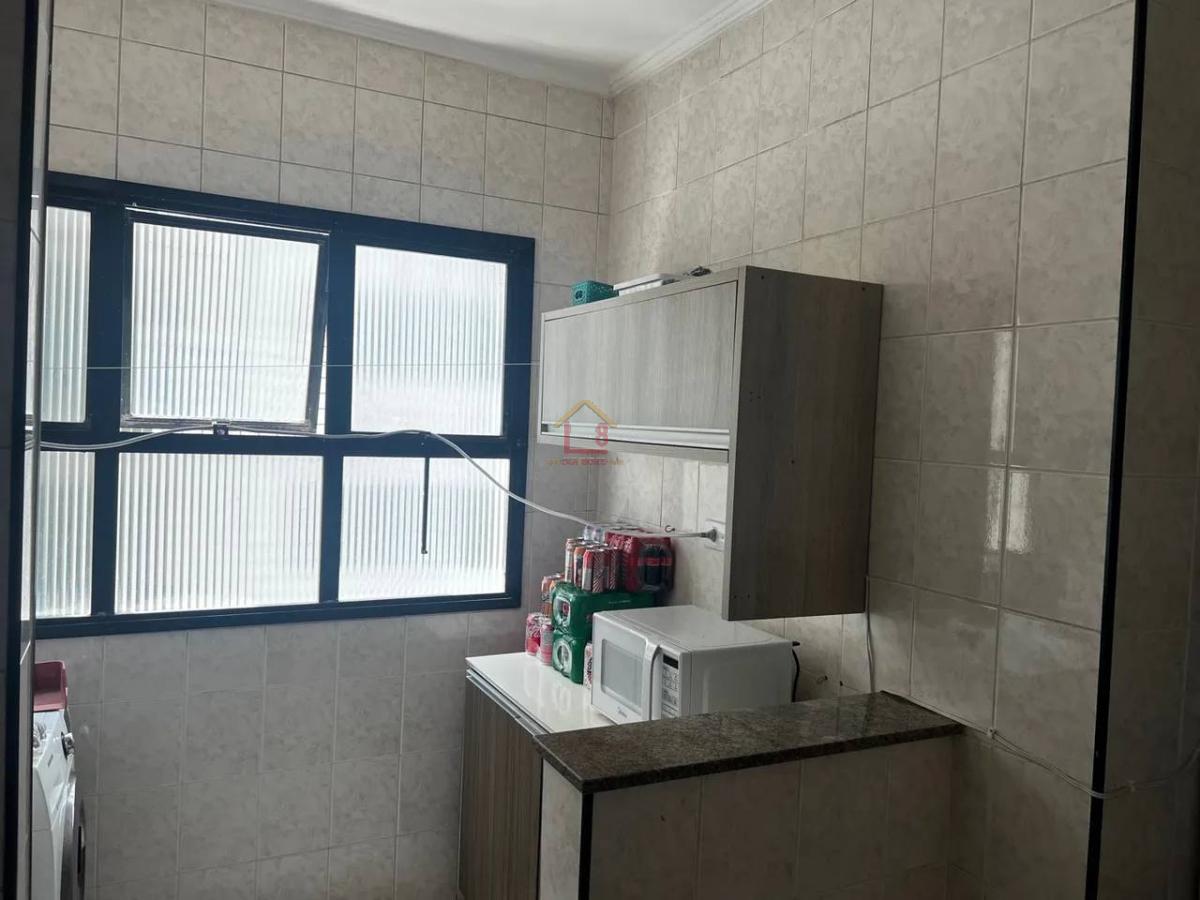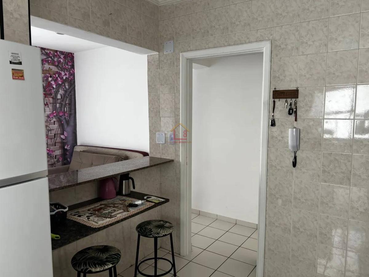 1 dormitório transformado em 2 , sala , cozinha , banheiro e lavanderia , sacada com vista mar , 1 vaga de garagem