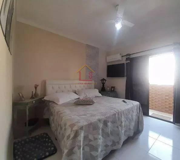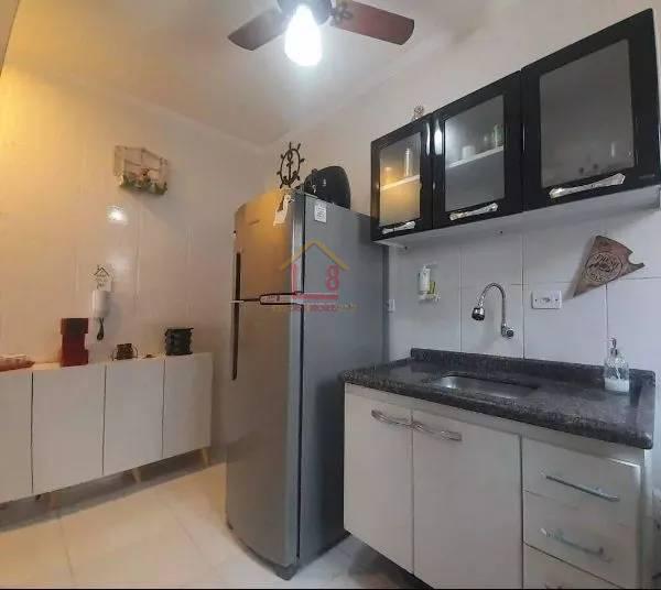 01 dormitório, sala, varanda, armários, wc social, 03 andar de escada, Apto semi mobiliado, quarto possui ar condicionado e sacada frente rua. Sala possui uma sacada lateral. 01 garagem. Próximo a praia da Guilhermina